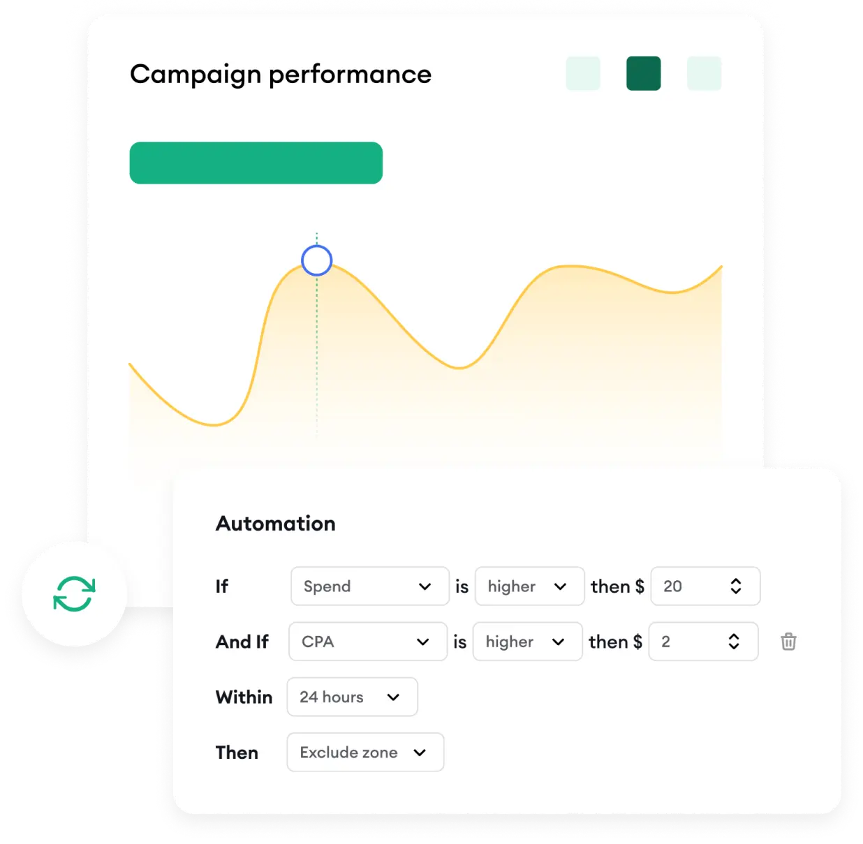 Automatically adjust your bids and ad placements once your CPA, ROI, CR, conversions, and other metrics reach the target